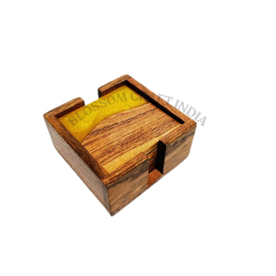 ชุดถาดรองแก้วไม้วอลนัททำจากไม้อะคาเซียเอฟเฟกต์หินอ่อน4ชิ้นเป็นมิตรต่อสิ่งแวดล้อม