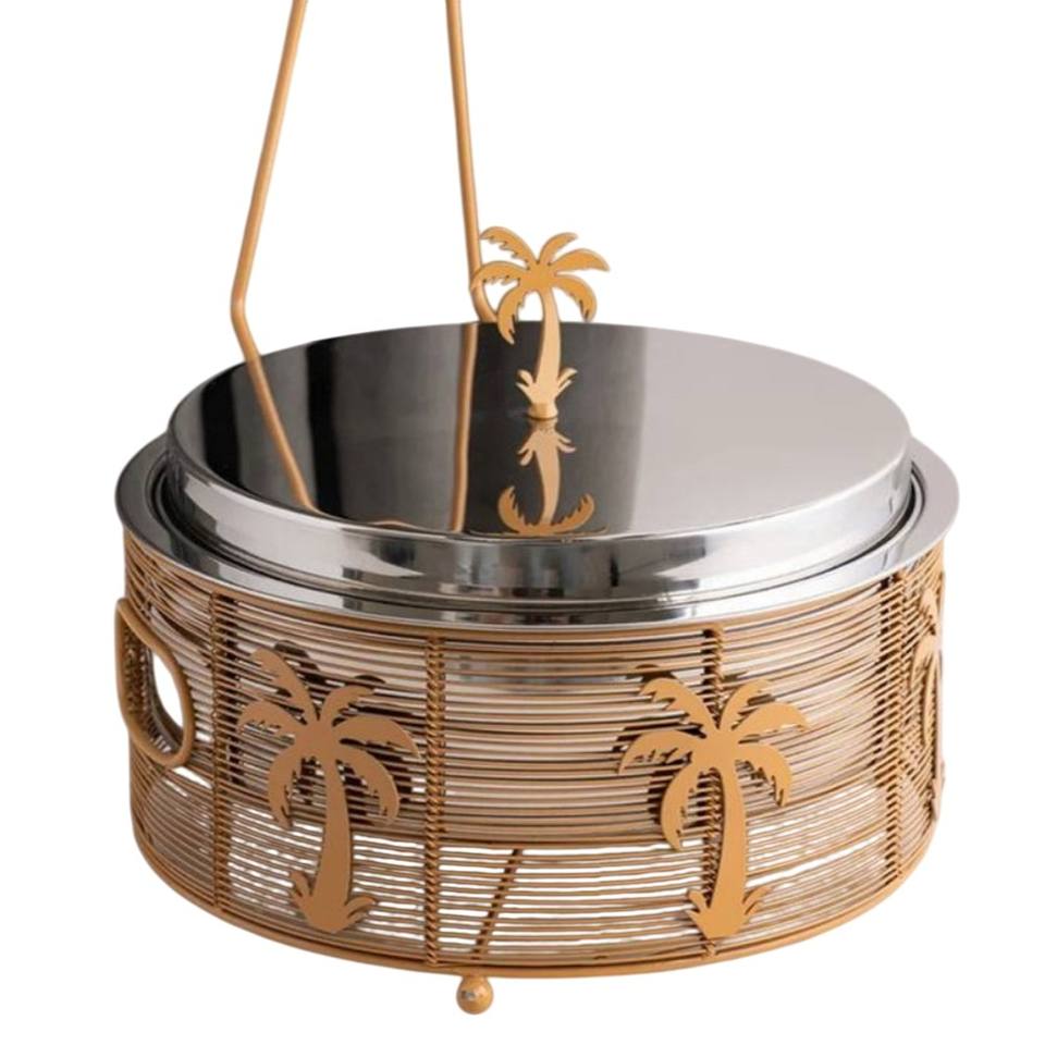 ชุดอุ่นอาหารบุฟเฟ่ต์สแตนเลสทรงกลมคุณภาพสูง พร้อมที่วางสีทอง สำหรับงานจัดเลี้ยง