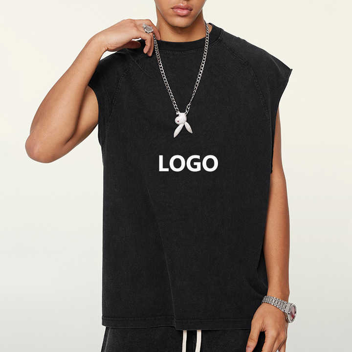 เสื้อกล้ามผู้ชายสไตล์ย้อนยุคฟอกสี240gsm ผ้าสแปนเด็กซ์/ ผ้าฝ้ายผลิตจากโรงงาน OEM เป็นมิตรกับสิ่งแวดล้อม