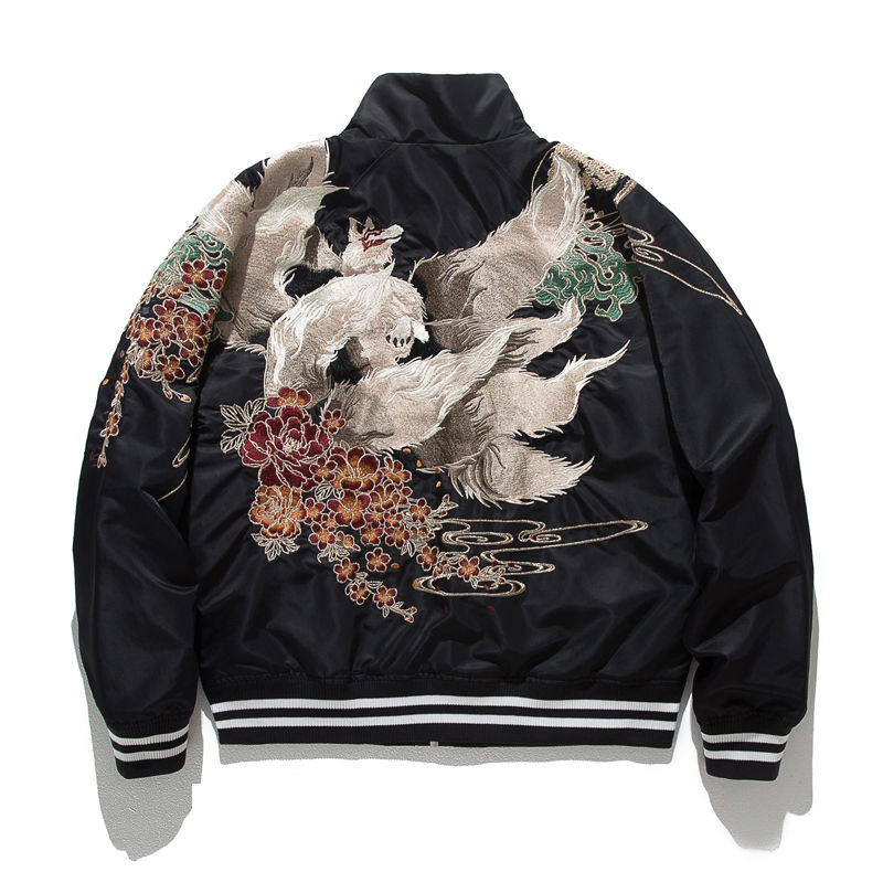 เสื้อแจ็คเก็ตซูกะจังคุณภาพสูงแบบกลับด้านได้สำหรับผู้ชายและผู้หญิง ปักลายสตรีทแวร์ เสื้อแจ็คเก็ตผ้าแคนวาสสำหรับฤดูใบไม้ผลิ คุณภาพสูง ป้องกันคราบสกปรก