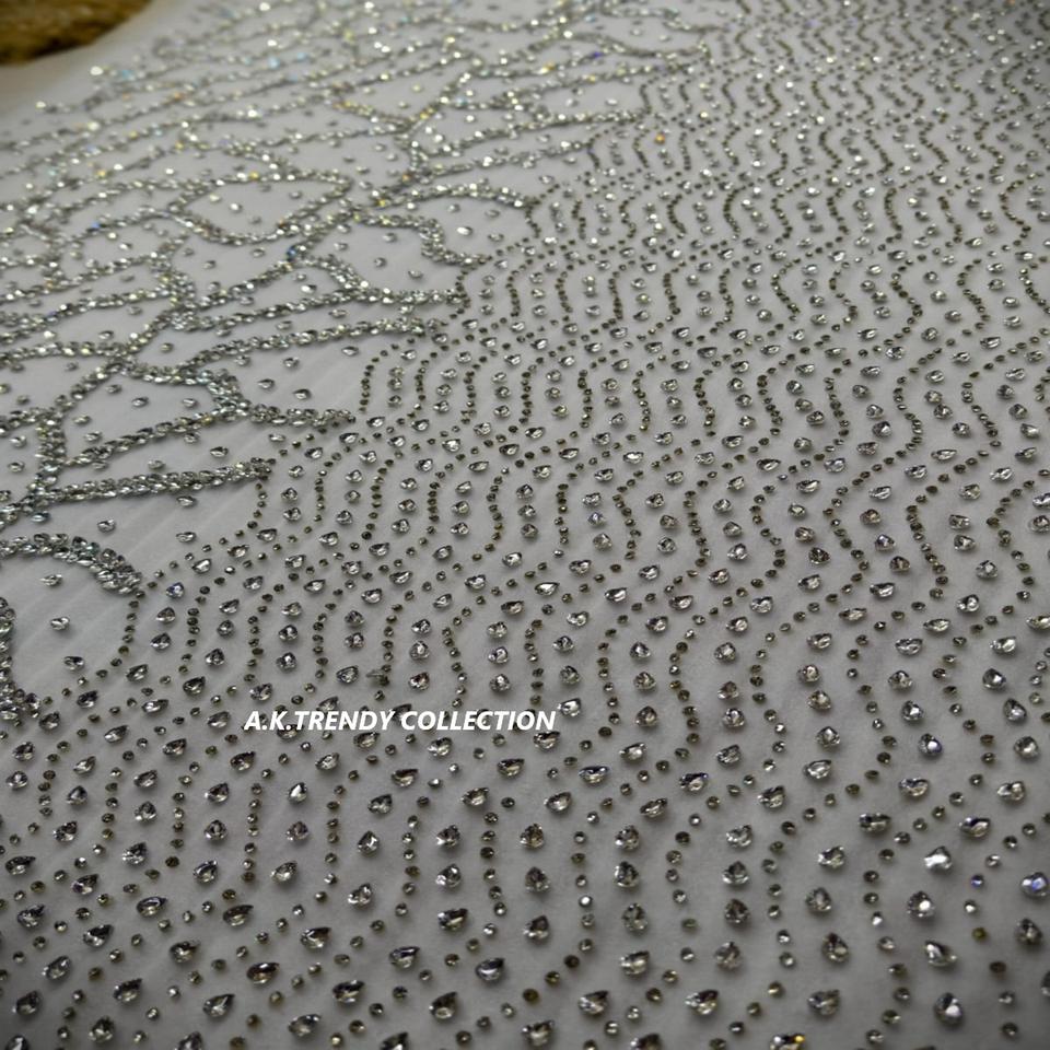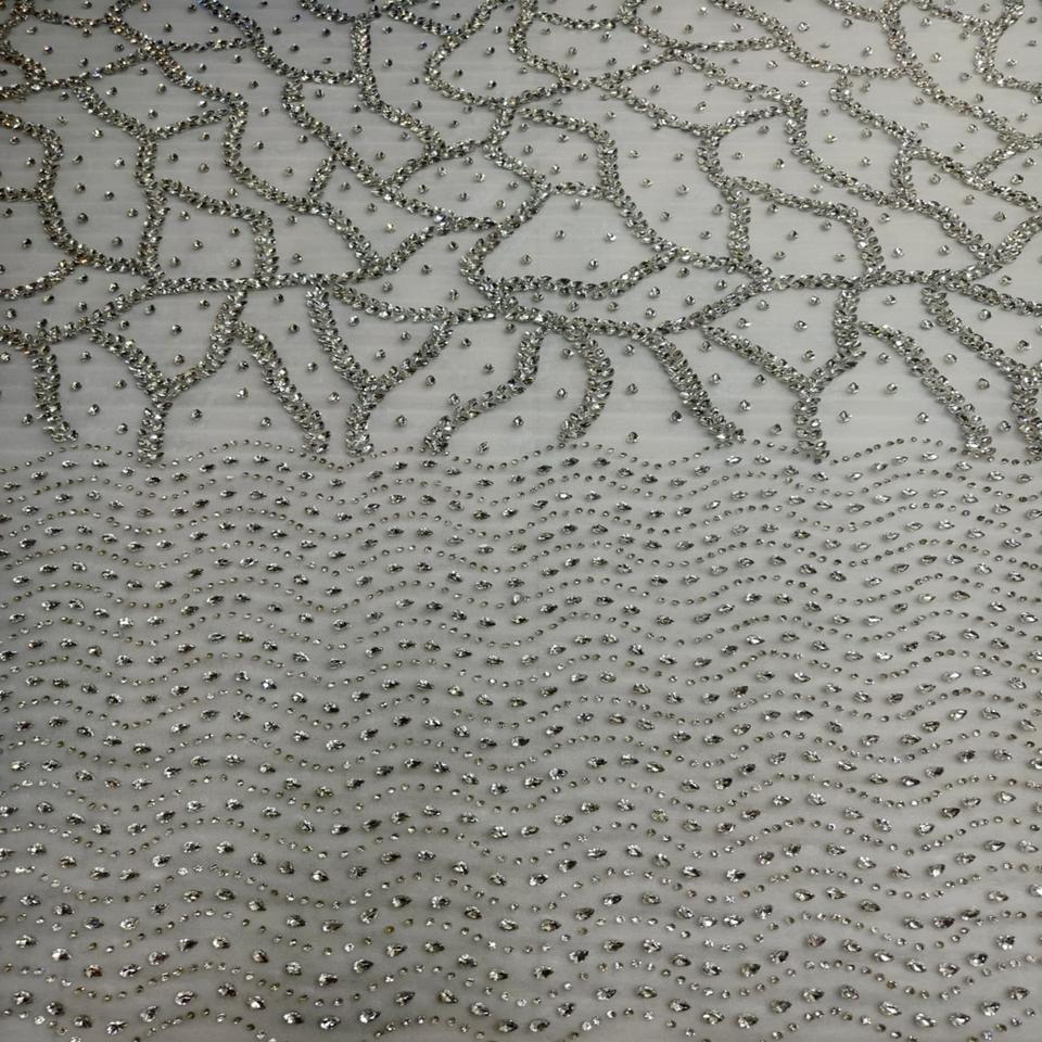 ผ้าลูกไม้ปักลายดอกไม้ตาข่ายเน็ต 100% คุณภาพสูง ประดับด้วยคริสตัล รักษ์โลก 5 หลา หรูหรา