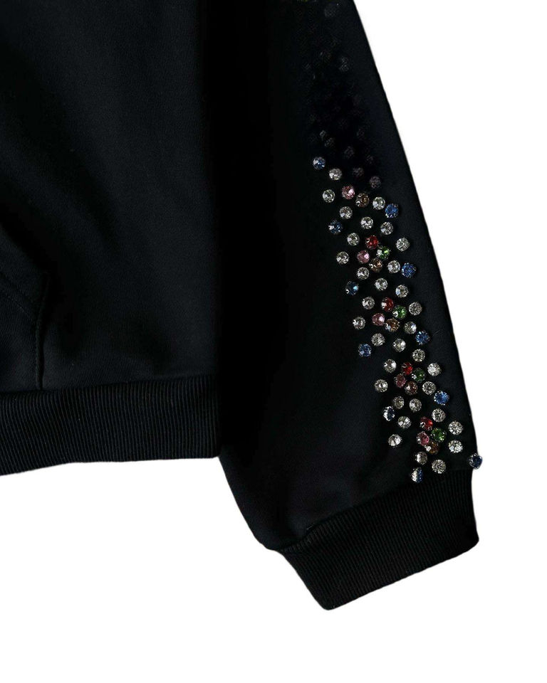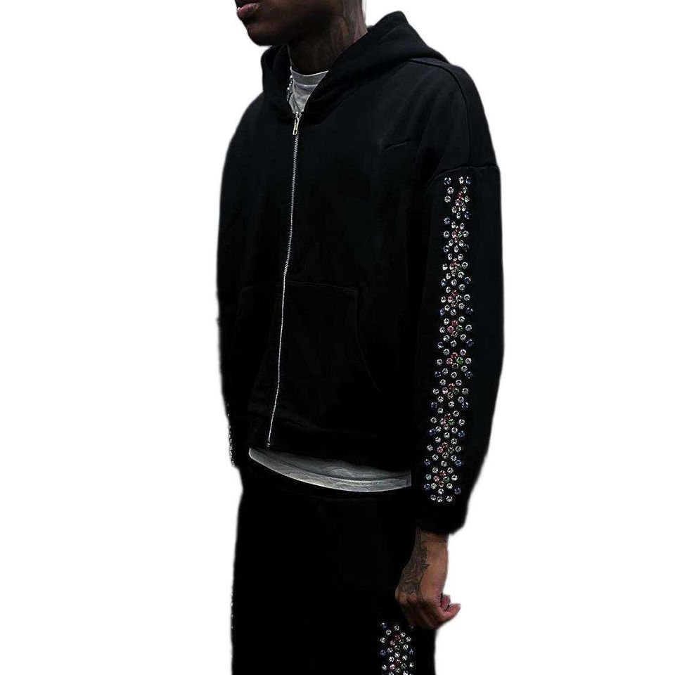 เสื้อฮู้ดซิปคุณภาพสูง ประดับเพชรเทียม โลโก้สั่งทำ ผ้าฝ้ายหนานุ่ม สไตล์สตรีทแวร์ผู้ชาย ทรงโอเวอร์ไซส์ ตัดสั้น