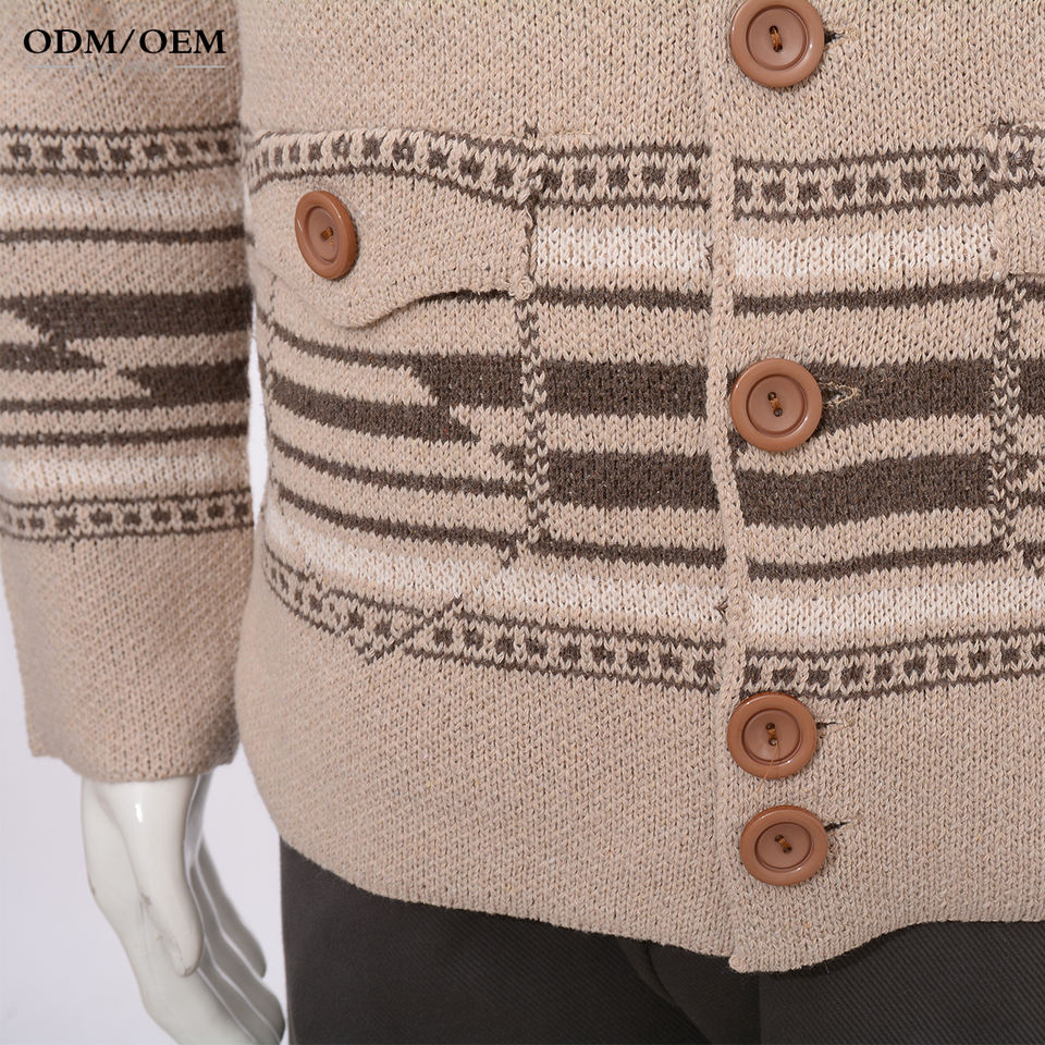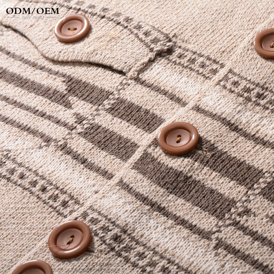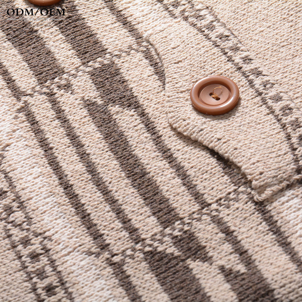 เสื้อคาร์ดิแกนถักคุณภาพสูง ผ้าริบ มีกระเป๋าข้าง ปกคอพับ ติดกระดุมด้านหน้า