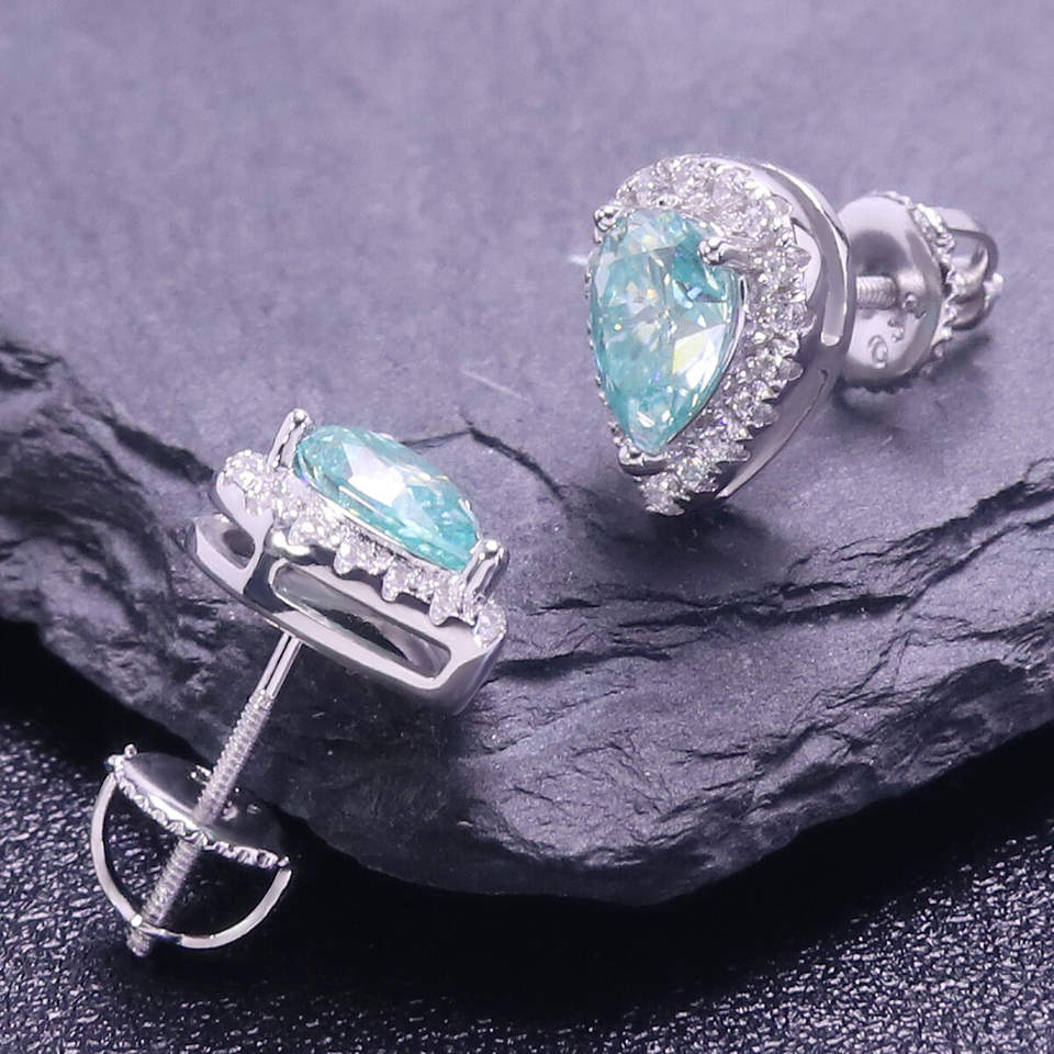 ต่างหูมอสซาไนต์สีเขียวคุณภาพสูง ดีไซน์โรแมนติกหรูหรา สำหรับผู้หญิง ชุบเงิน ชุบทอง รูปทรงกลม ตัวเรือนเงินแท้