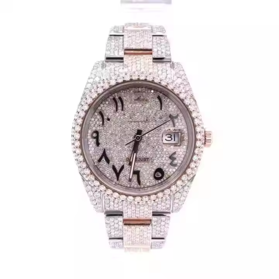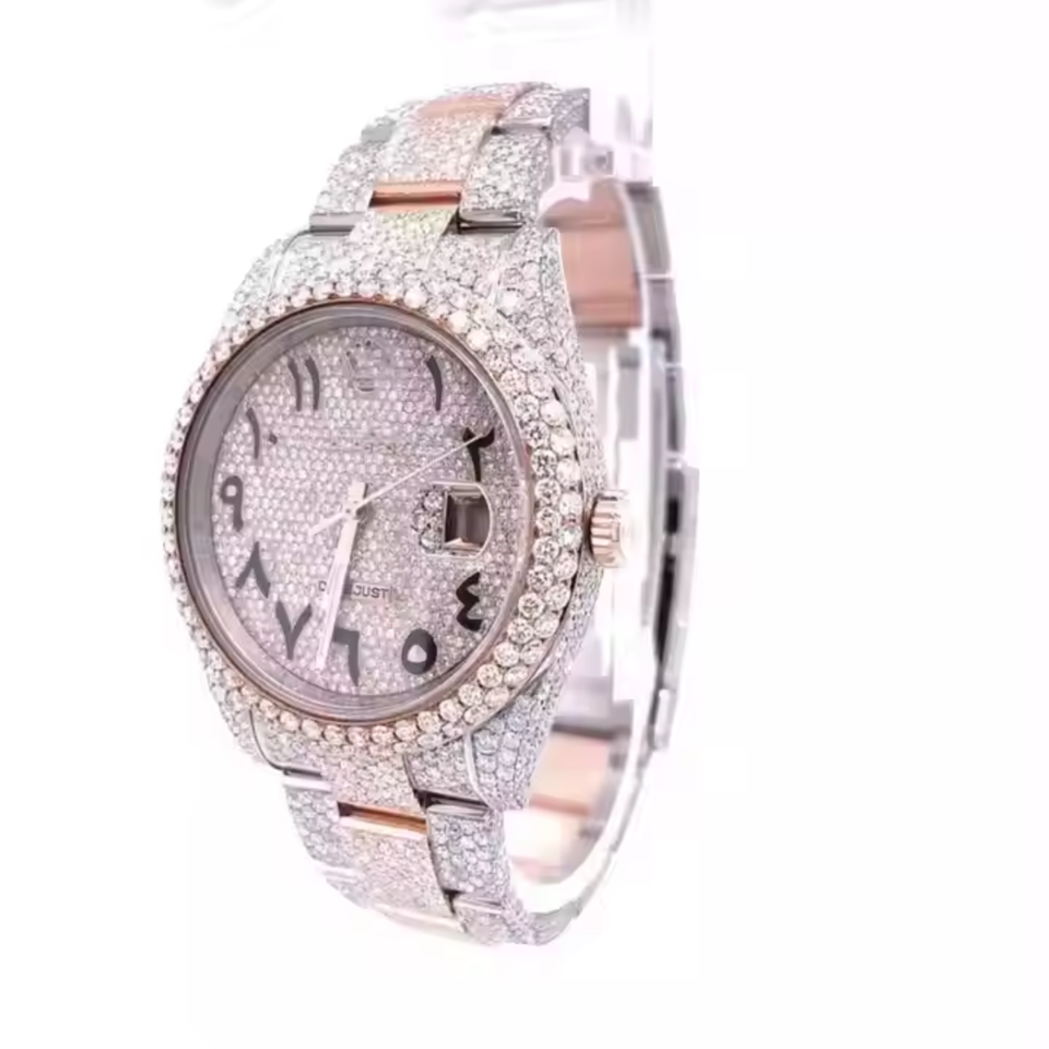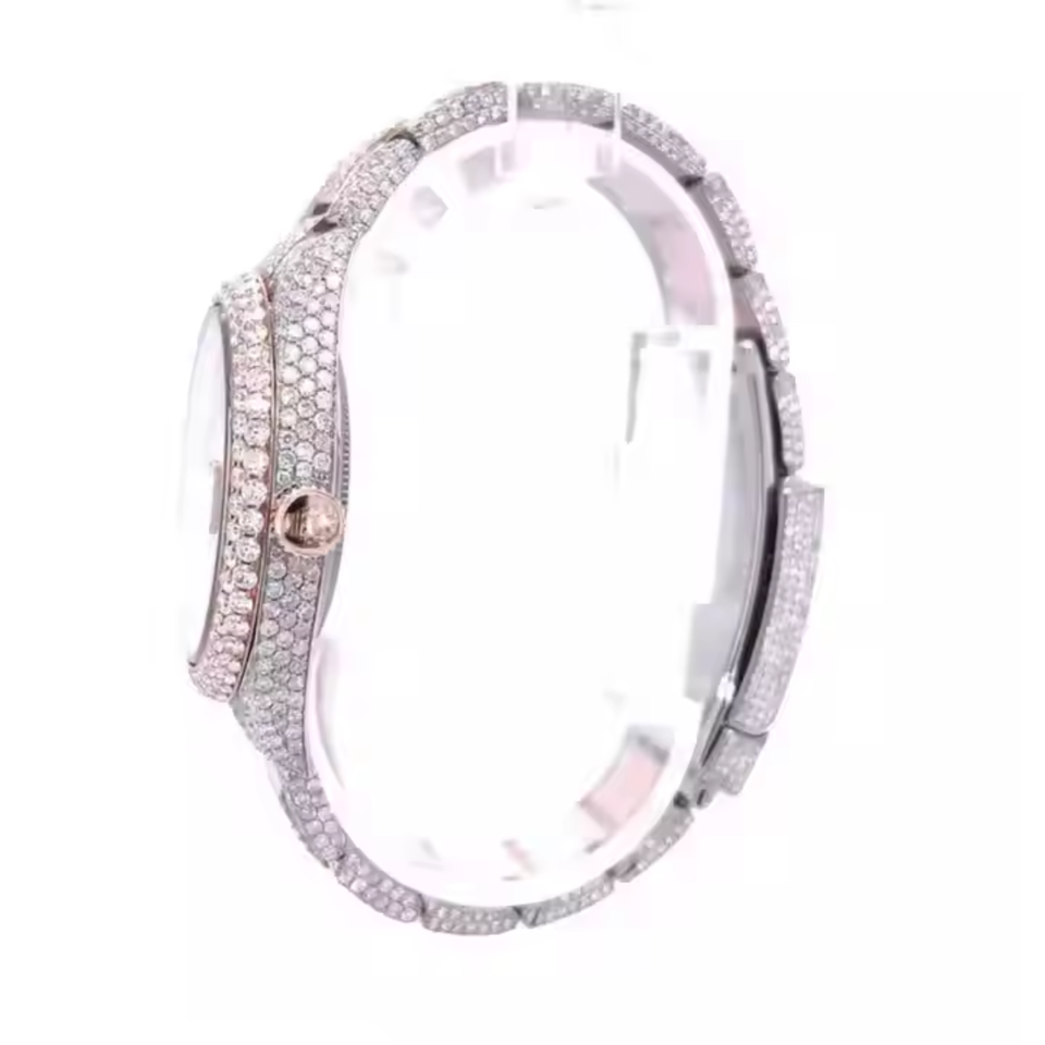 นาฬิกาควอตซ์สำหรับนักธุรกิจสไตล์ฮิปฮอปแบบแอนะล็อกประดับเพชรหรูหราสีโรสโกลด์ VVS Moissanite