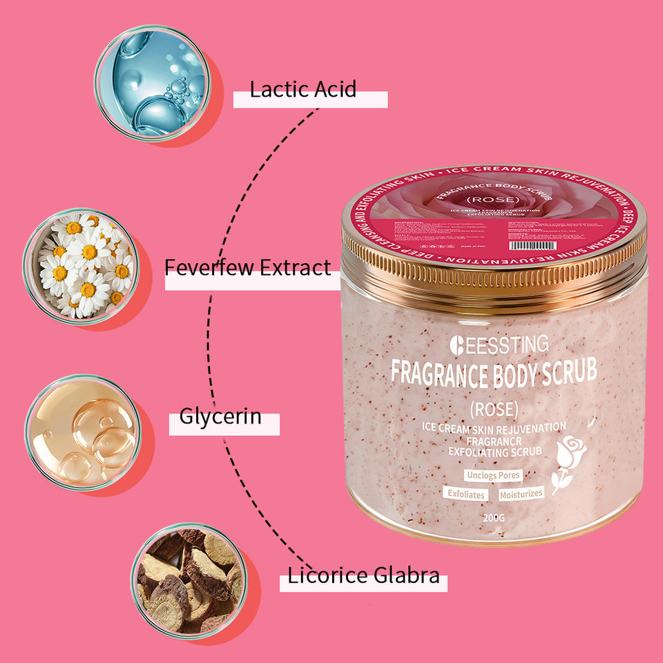 ครีมขัดผิวหน้าและผิวกายสูตรบำรุงผิวขาวใส กลิ่นกุหลาบคุณภาพสูง ใช้ได้ทุกวัน ช่วยผลัดเซลล์ผิวอย่างอ่อนโยน