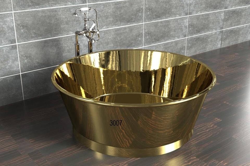 อ่างอาบน้ำทรงกลมทำจากทองเหลืองพร้อมกระจกขัดเงา