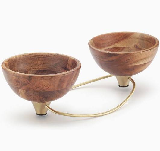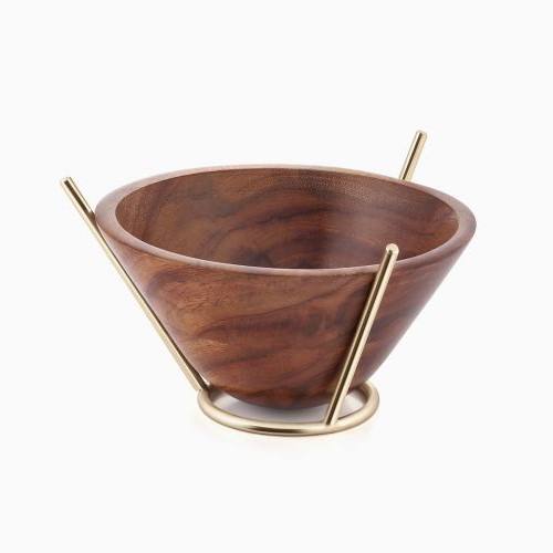 ชามสลัดไม้มะม่วงธรรมชาติรูปทรงกลม,ถ้วยข้าวพร้อมสายโลหะด้ามจับสีทองสำหรับตกแต่งงานแต่งงาน