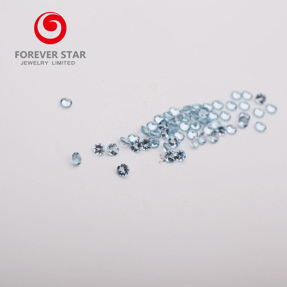หินอัญมณีทรงกลมที่มีคุณภาพสูงตัดเป็นเหลี่ยมเพชรพลอยธรรมชาติลอนดอนสีน้ำเงินบุษราคัม2มม.-10มม. 0.04ct-4.2ct สำหรับการทำเครื่องประดับ