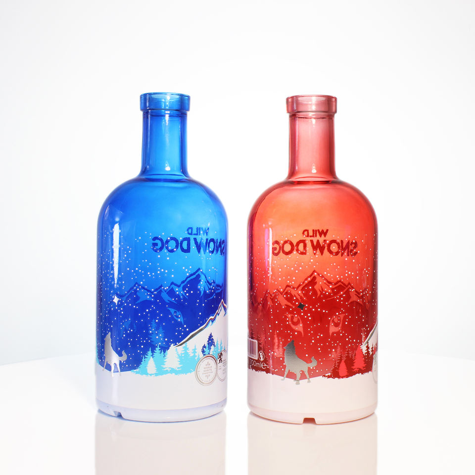 ขวดแก้วเหล้าวอดก้าเหล้าวิสกี้ขนาด500มล. 700มล. 750มล. พิมพ์ลายสีฟ้าทรงกลม