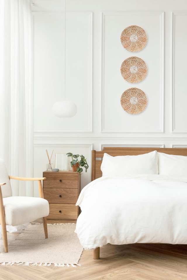 ตะกร้าแขวนผนังทำจากหญ้าทะเลทรงกลมสำหรับตกแต่งผนังตะกร้าสานด้วยมือจากเวียดนาม
