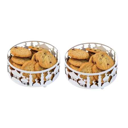 ถาดช็อกโกแลตรูปทรงกลมคุณภาพสูงสำหรับเดือนรอมฎอน ทำจากโลหะสีขาว ใช้สำหรับเสิร์ฟขนมและของว่าง อุปกรณ์เสริมสำหรับชาวมุสลิม รุ่นดีลักซ์