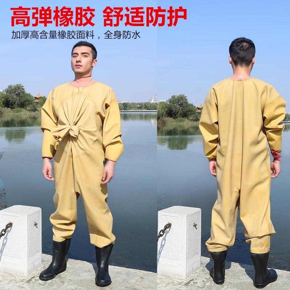 ชุดกันน้ำแบบเต็มตัวคุณภาพสูงสำหรับผู้ชาย ทำจากยางอย่างดี ทนทาน พร้อมรองเท้าบูทในตัว สีพื้น เหมาะสำหรับตกปลา