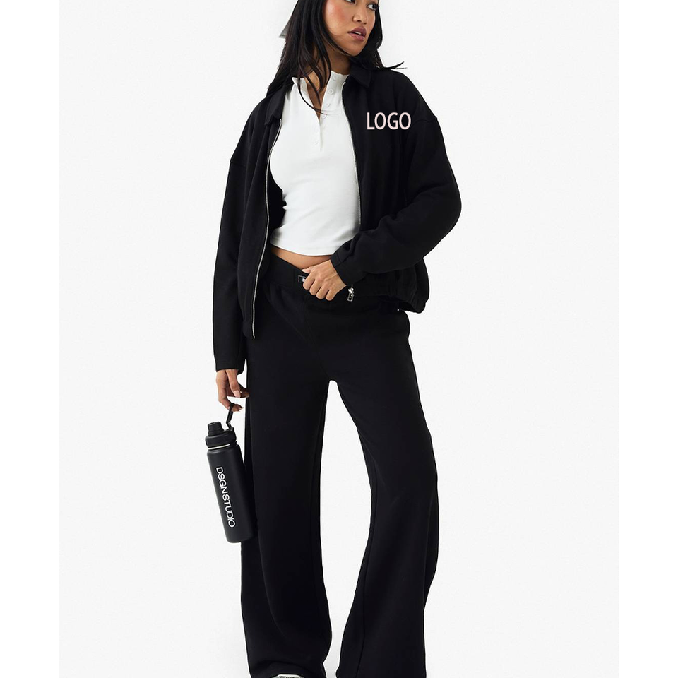 ชุดวอร์มฟุตบอลคุณภาพสูงสำหรับการฝึกซ้อมกลางแจ้ง เสื้อผ้ากีฬาผู้หญิงเอวสูงแบบมีซิป ไหล่ตก ชุด 2 ชิ้น