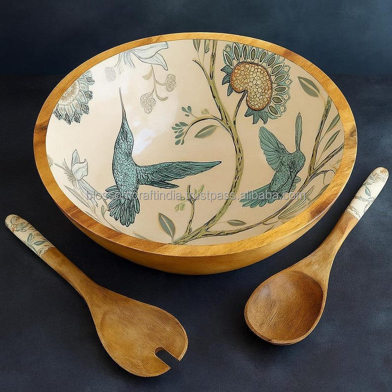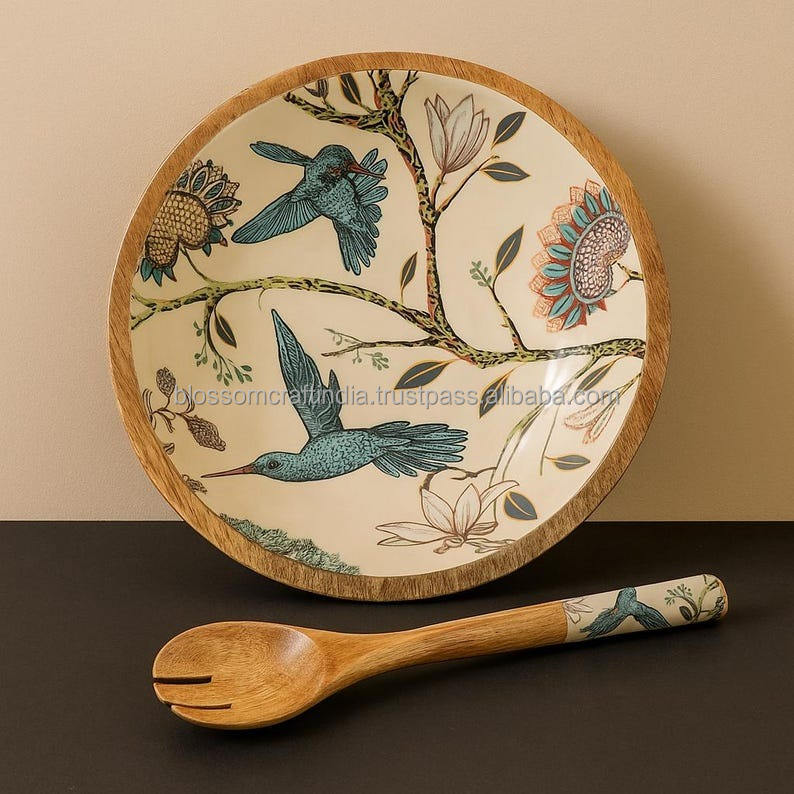 ชามไม้สไตล์เรียบง่ายคุณภาพสูง งานแฮนด์เมด ดีไซน์สวยงาม เหมาะสำหรับโต๊ะอาหาร ห้องครัว บ้าน และการเสิร์ฟอาหาร