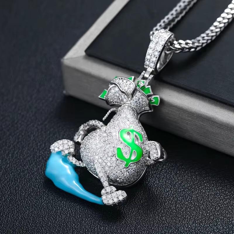 จี้โมอิสซาไนต์คุณภาพสูง S925 สไตล์เรืองแสง สร้อยคอฮิปฮอปสำหรับผู้ชาย ของขวัญสำหรับออกงานกลางคืน