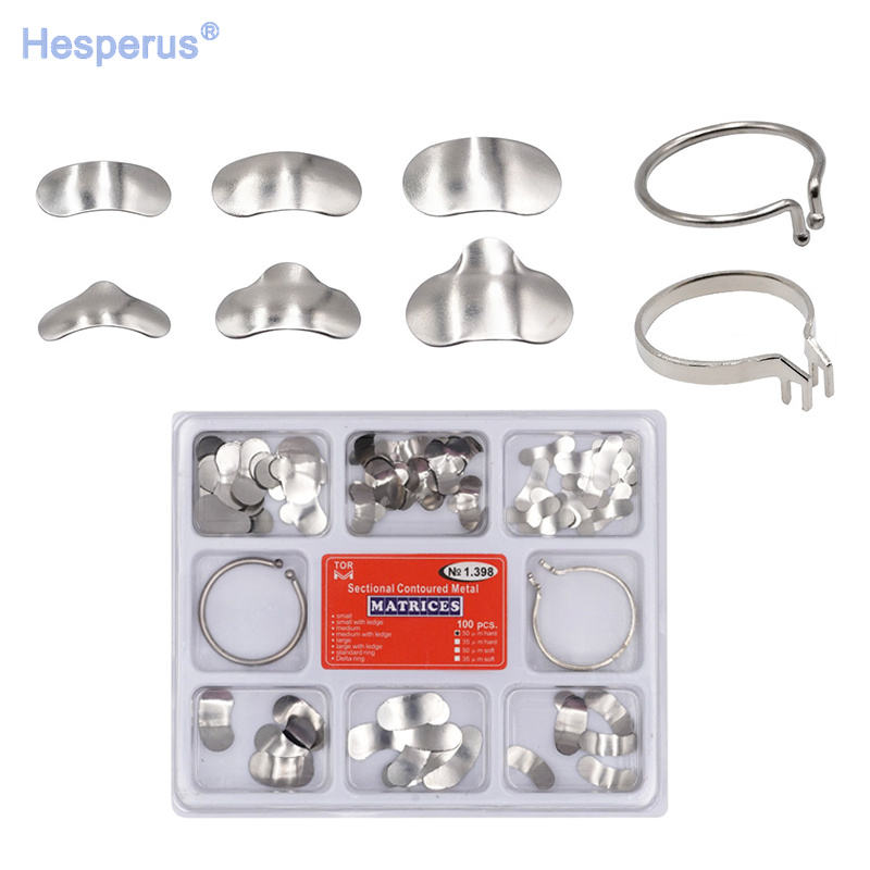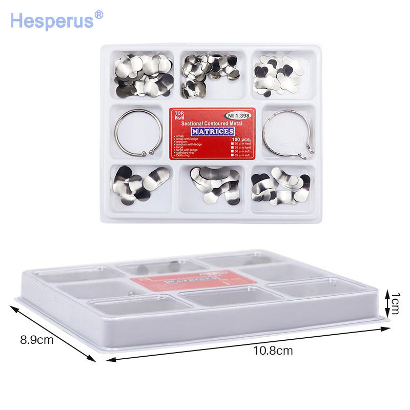 เมทริกซ์โลหะสำหรับงานทันตกรรมคุณภาพสูง SS316 แบบกังหัน 100 ชิ้น แบบแบ่งส่วนโค้งมน หมายเลข 1.398 ยี่ห้อ Deasin รับประกัน 1 ปี