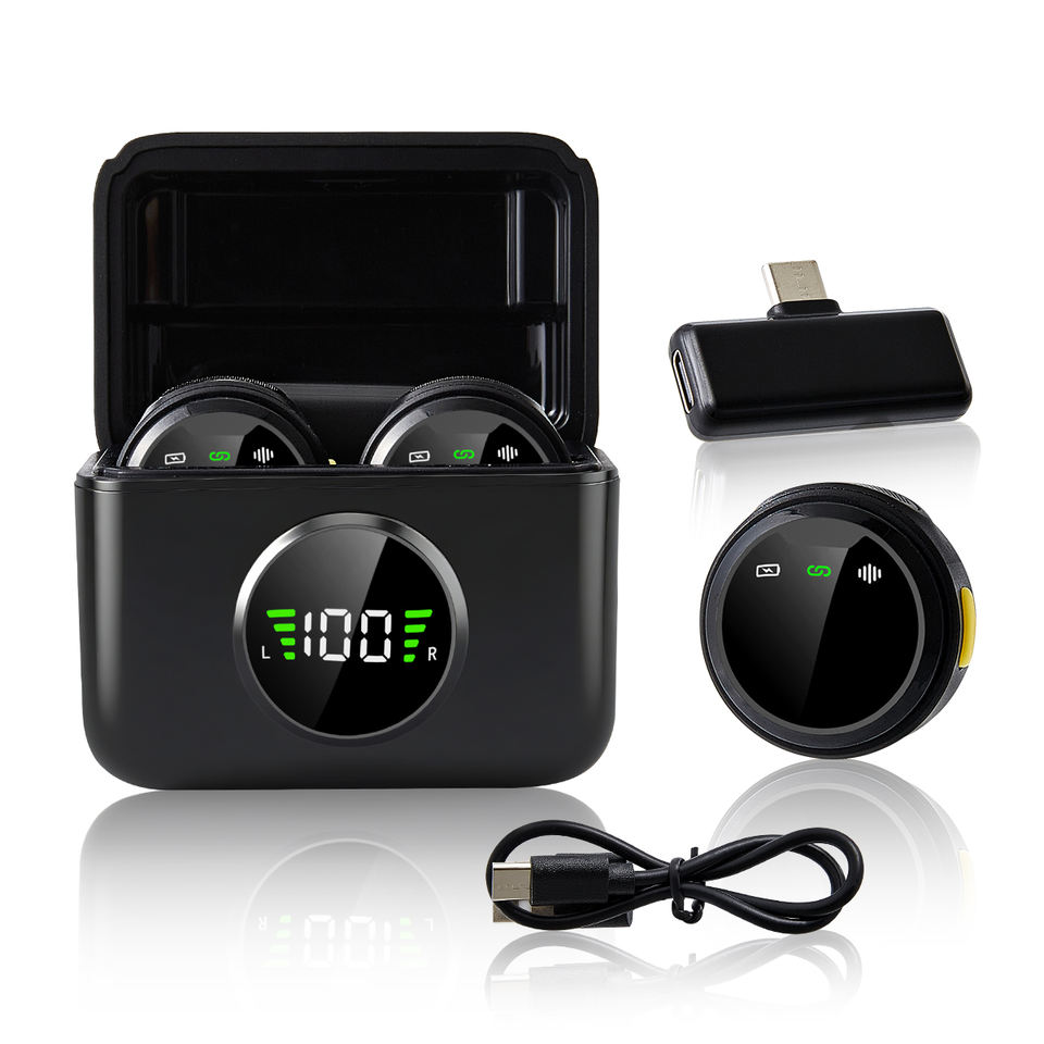 ไมโครโฟนไร้สายคุณภาพสูง SX81 2.4G แบบหนีบปกเสื้อ พร้อมตัวรับสัญญาณ 2-in-1 แบบ Type-C สำหรับการบันทึกเสียงสดและการประชุม