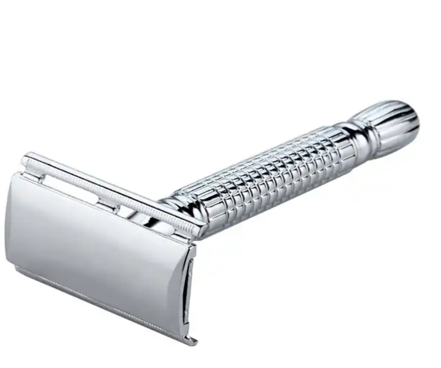 มีดโกนหนวดแบบมีด้ามยาวสำหรับผู้ชายมีดโกนแบบมีขอบสองด้านปลอดภัยใบมีดทองเหลืองคุณภาพสูงใช้ซ้ำได้