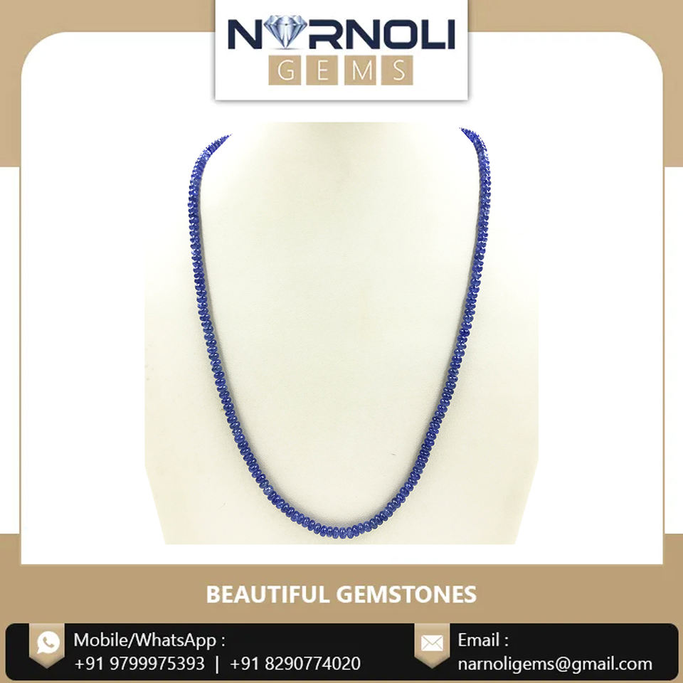 สร้อยคอสายลูกปัดแซฟไฟร์แบบเรียบมีขนาดที่กำหนดเองได้