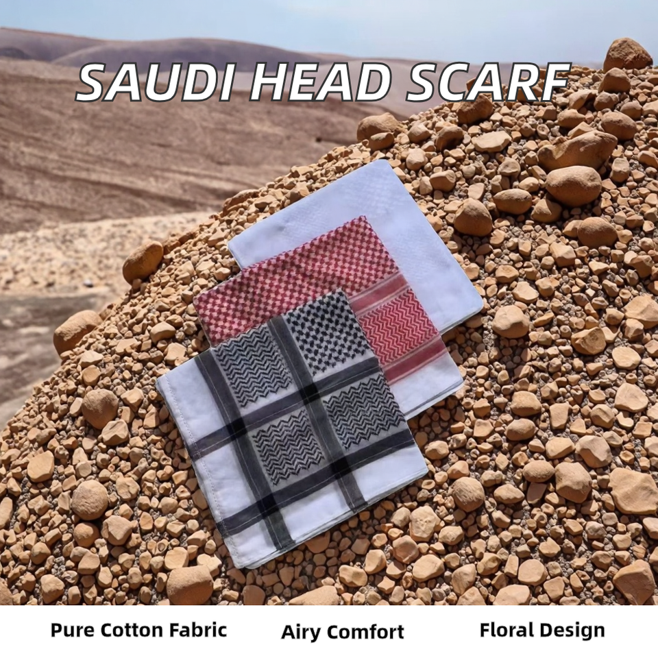 ผ้าโพกหัวสำหรับผู้ชายสไตล์ซาอุดิอาระเบียผ้าพันคอทรงสี่เหลี่ยมลายดอกไม้ผ้าพันคอทะเลทรายผ้าชีฟองสำหรับมุสลิม