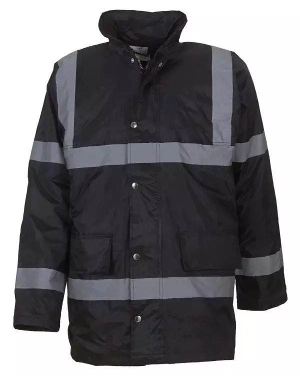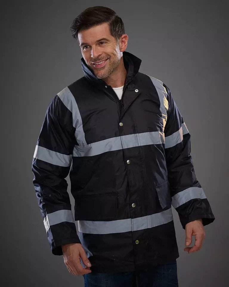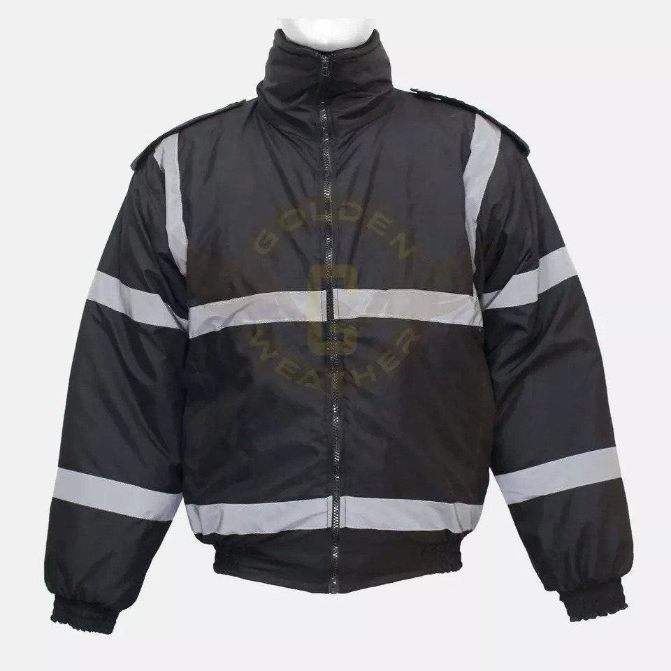 เสื้อกั๊กนิรภัยคุณภาพสูงสำหรับฤดูหนาว สะท้อนแสงมองเห็นได้ชัดเจน ชุดทำงานสำหรับเจ้าหน้าที่ ซิปสองทาง กระเป๋าข้างติดกระดุม