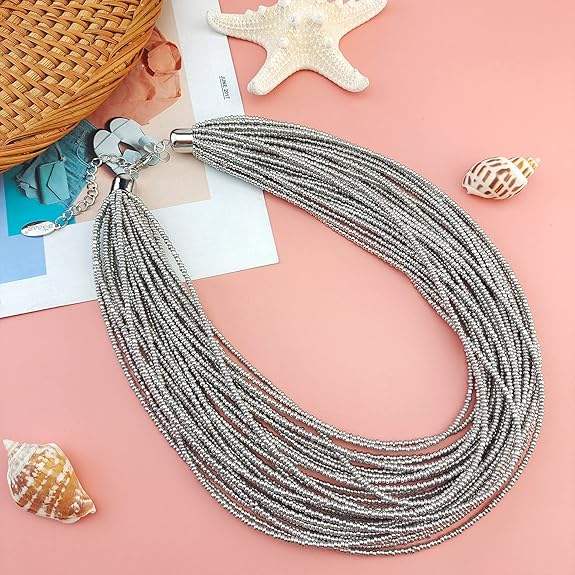 สร้อยคอลูกปัดเมล็ดพันธุ์คุณภาพสูงสำหรับผู้หญิงสร้อยคอแบบคลัสเตอร์ปลอกคอกันอ้วนหลายชั้นของขวัญ