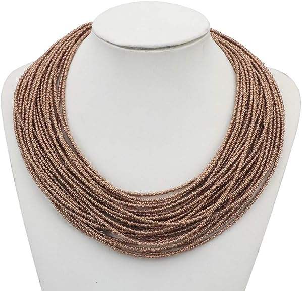 สร้อยคอลูกปัดเมล็ดพันธุ์คุณภาพสูงสำหรับผู้หญิงสร้อยคอแบบคลัสเตอร์ปลอกคอกันอ้วนหลายชั้นของขวัญ