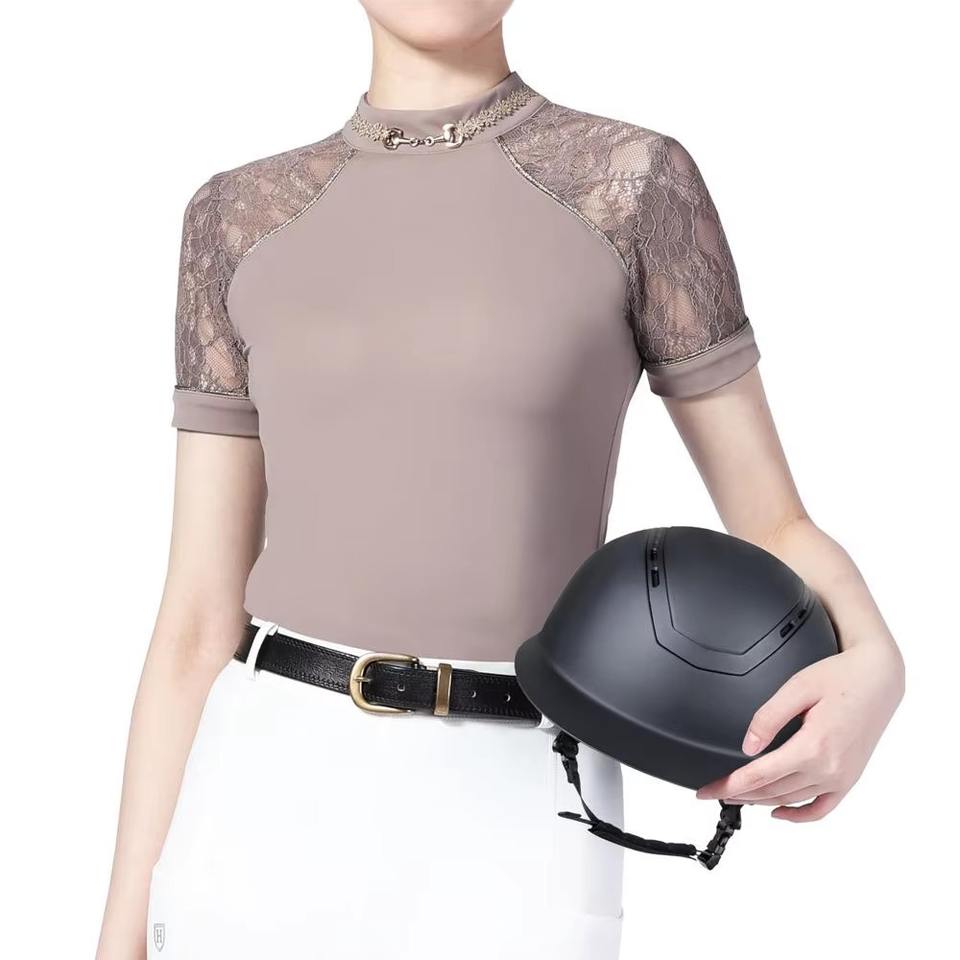 เสื้อขี่ม้าผู้หญิงคุณภาพสูง ผ้าถักเนื้อแน่น แห้งเร็ว แขนสั้น ปรับแต่งได้