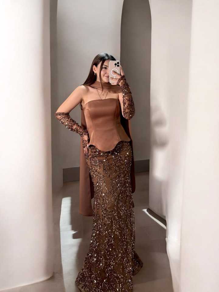คุณภาพสูงชุดราตรีประดับเลื่อมทรงเมอร์เมดแขนยาวชุดปาร์ตี้อย่างเป็นทางการเบอร์กันดีครีมสีกรมท่าขนาด 36 38 40 42