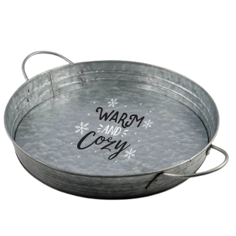 High Quality Serving Tray Home Decor Wedding and Festive Decor Rounded Shape Galvanized Decorative Tray with Metal Handle