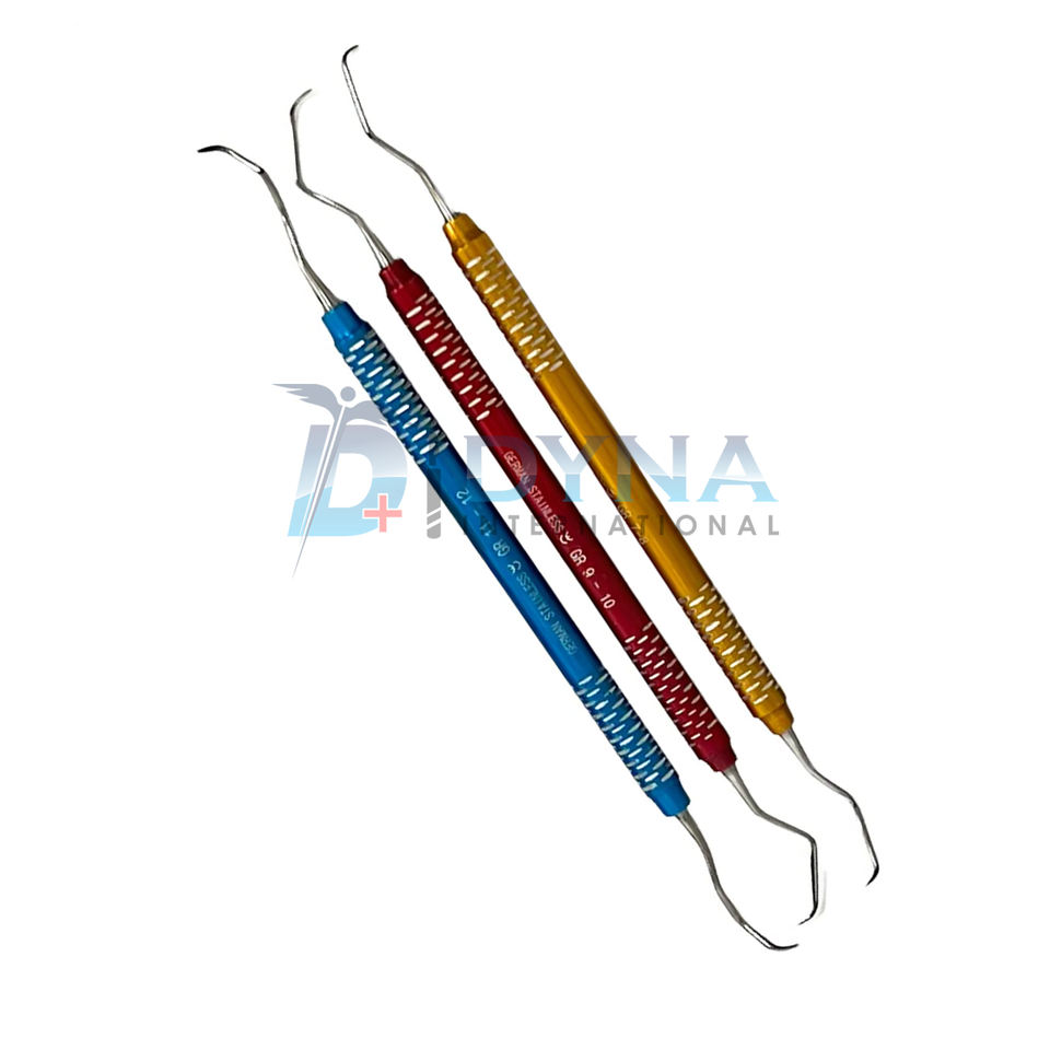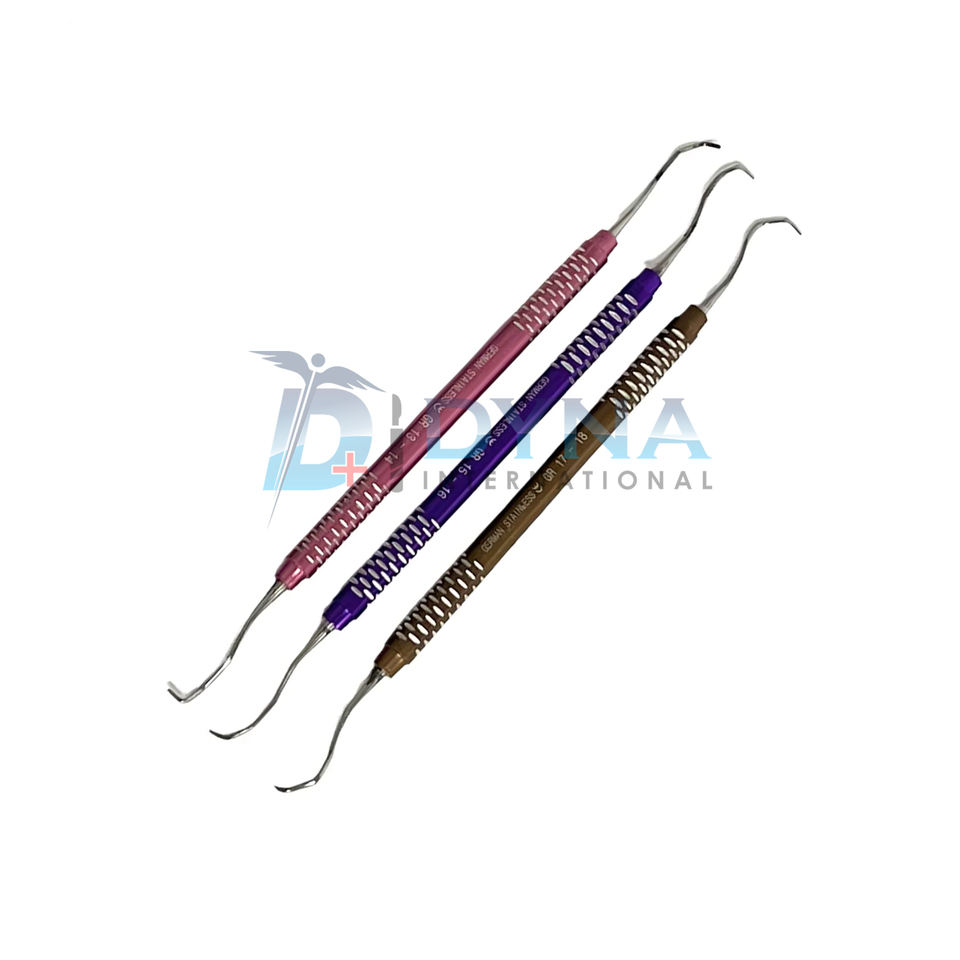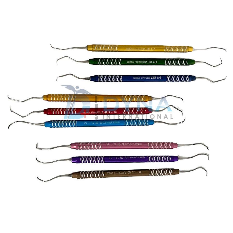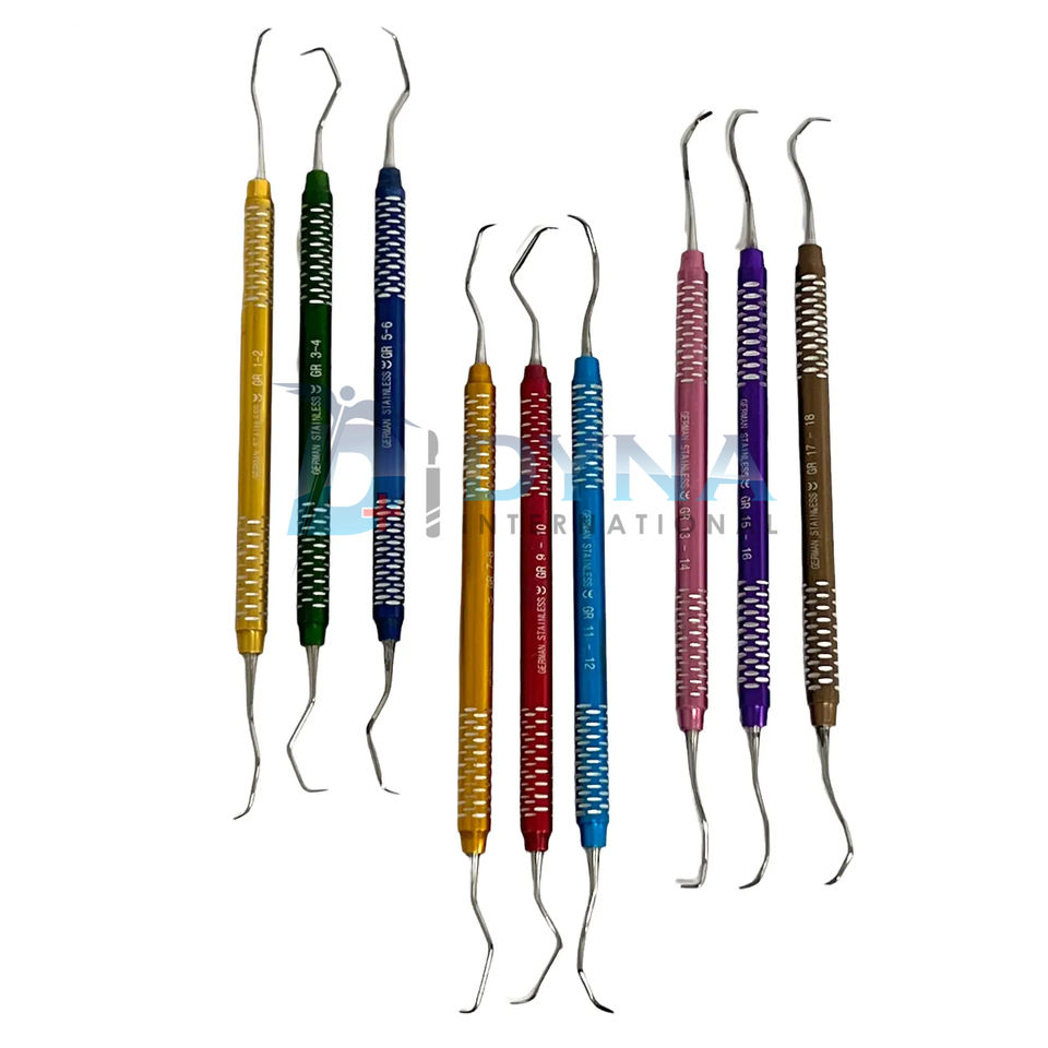 ชุดเครื่องมือขูดหินปูนเกรซี่คุณภาพสูง 9 ชิ้น (หลายสี) ได้รับการรับรองมาตรฐาน CE