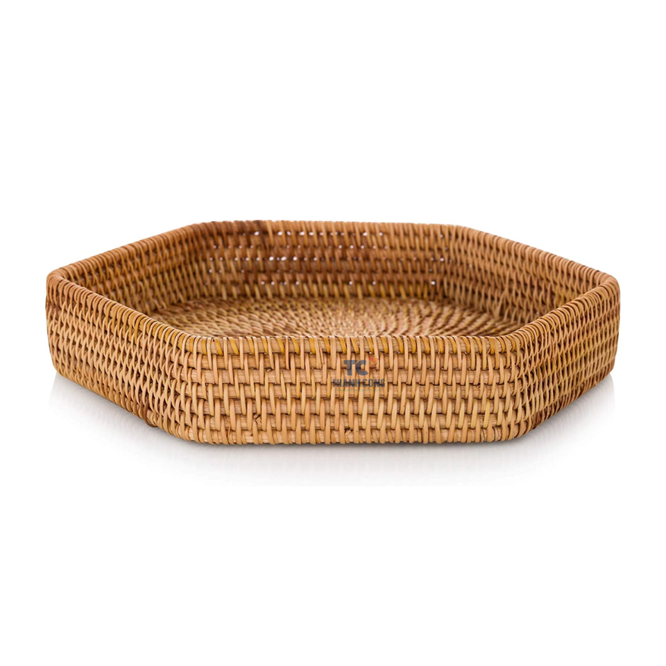 ชุดถาดเสิร์ฟพร้อมหวาย2ชิ้นรูปทรงหกเหลี่ยมสำหรับโต๊ะกาแฟ