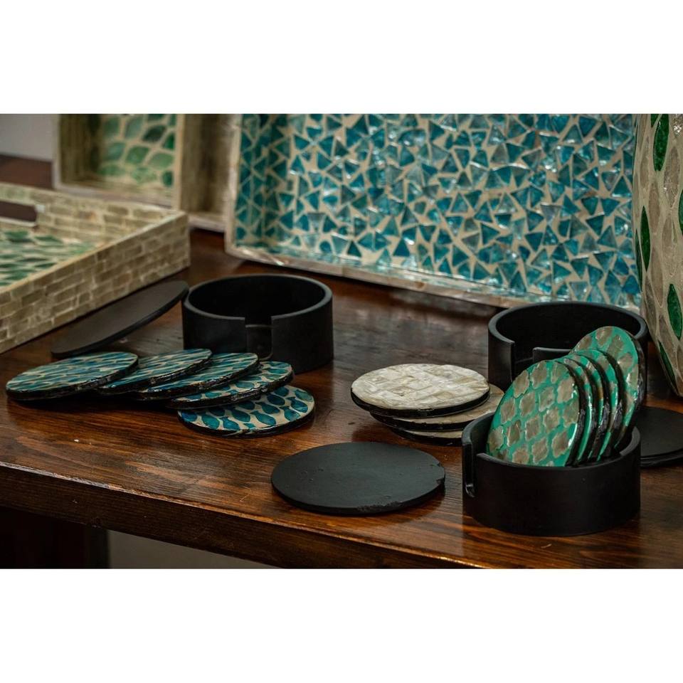 ชุดที่รองแก้วไข่มุก6ชิ้นสำหรับเครื่องครัวอุปกรณ์ตกแต่งบ้านทำด้วยมือในเวียดนาม