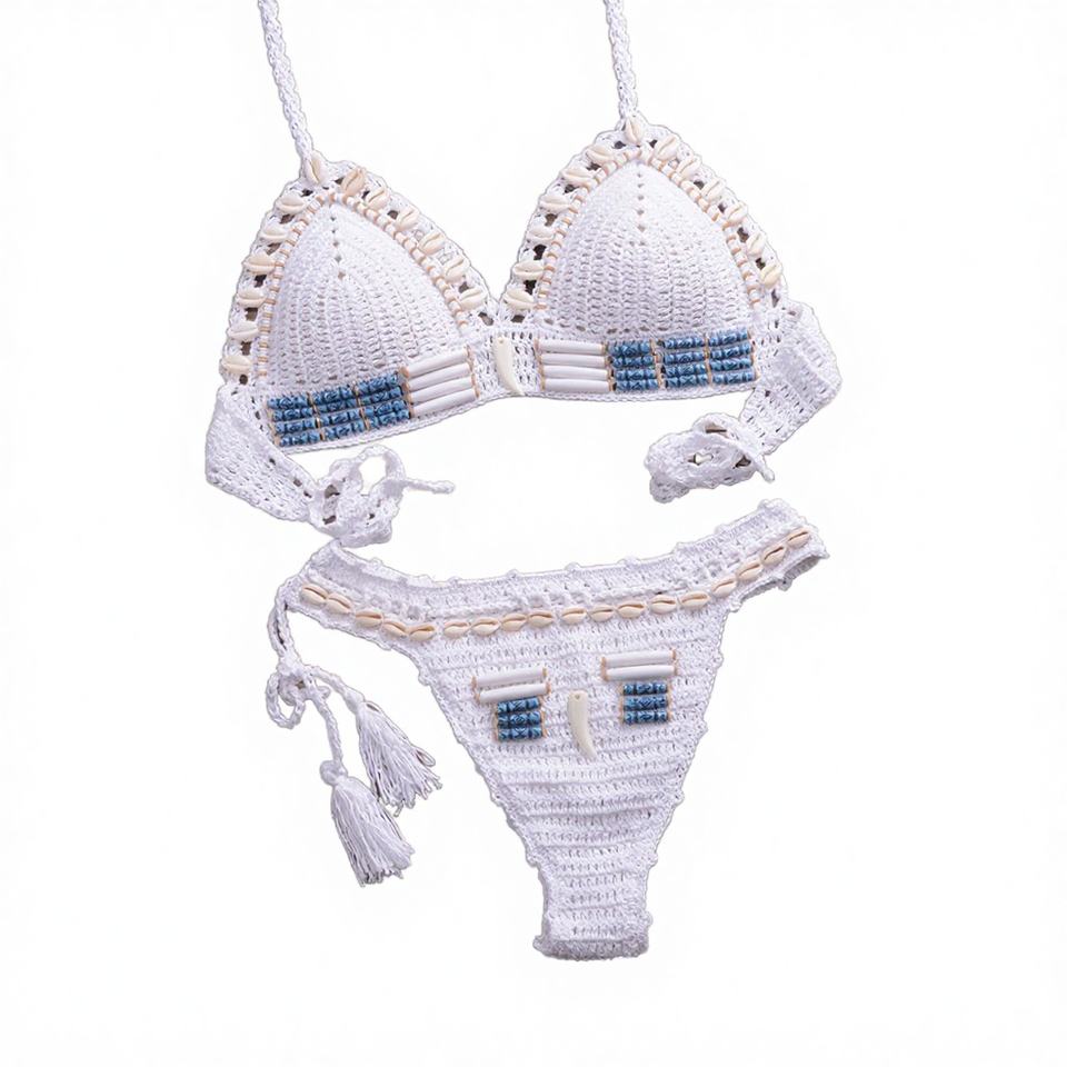 ชุดว่ายน้ำสองชิ้นคุณภาพสูงสำหรับผู้หญิง ดีไซน์เซ็กซี่แบบเรโทร ทรงเปลือกหอย บริการ OEM