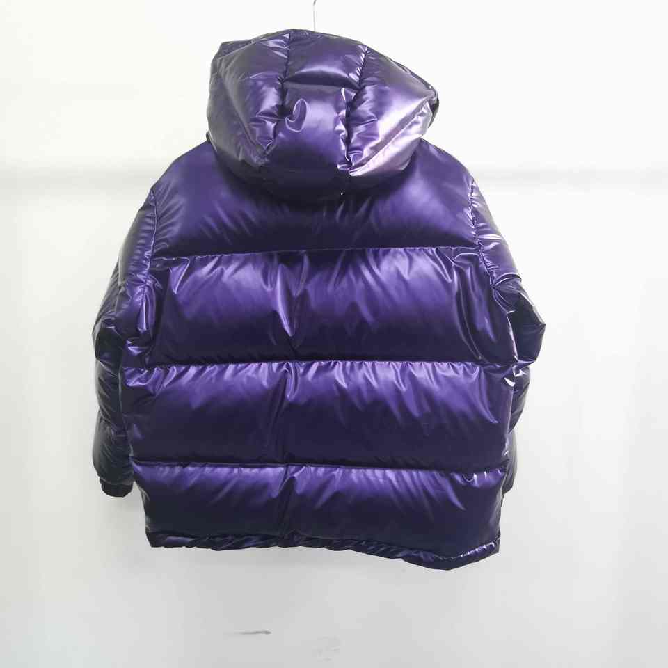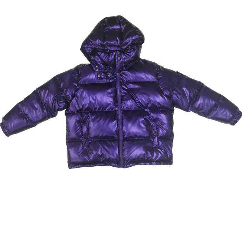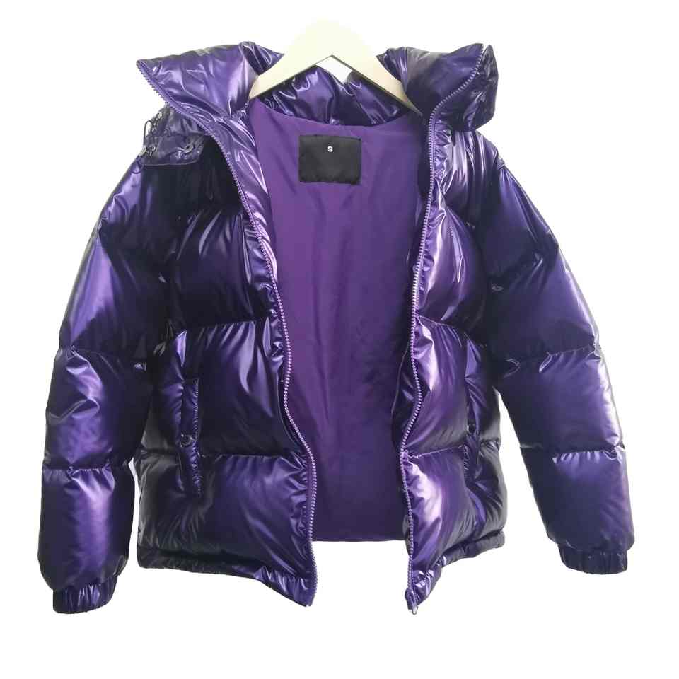 เสื้อแจ็คเก็ตพัฟเฟอร์สีม่วงเงาคุณภาพสูง ถอดหมวกติดกระดุมได้ ซิปหน้า สำหรับผู้ชาย ผ้าเรียบ ระบายอากาศดี มีฮู้ด ดีไซน์ทันสมัย