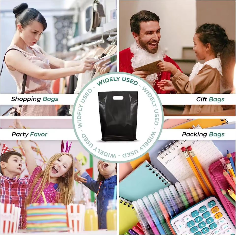 ถุงช้อปปิ้งคุณภาพสูงถุงช้อปปิ้งพลาสติก PE โปรโมชั่นแบบกําหนดเองจับไดคัทพร้อมการออกแบบโลโก้พิมพ์ใช้รีไซเคิลได้