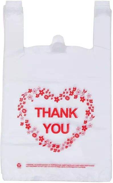 ถุงพลาสติกช้อปปิ้งคุณภาพสูงขอบคุณเสื้อยืดถุงพลาสติก HDPE