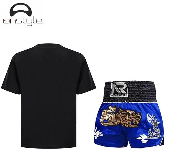 อุปกรณ์ซ้อมมวยแบบสั้นสำหรับมวยไทยประกอบด้วยเสื้อป้องกันปากกางเกงขาสั้นอุปกรณ์การต่อสู้ล่าสุด
