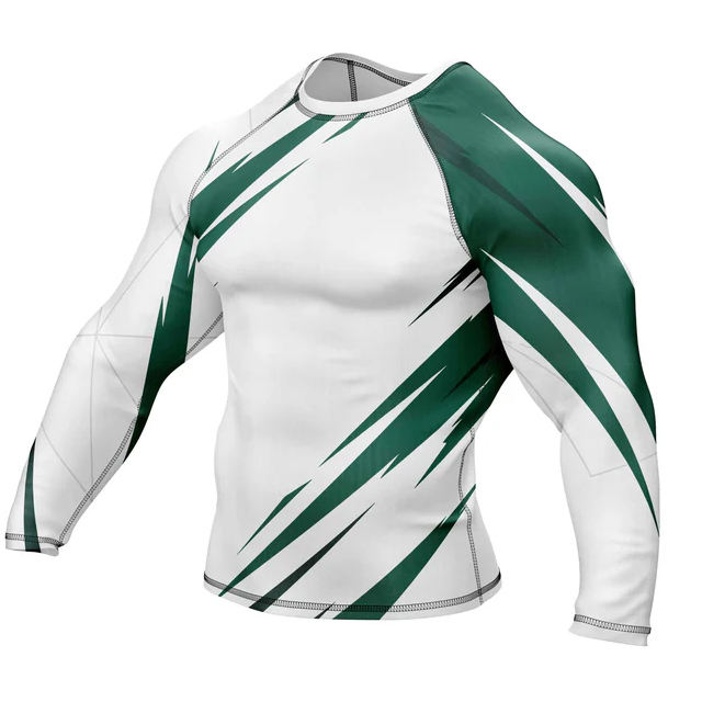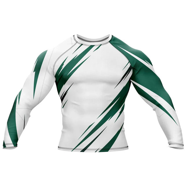 เสื้อแรชการ์ดแขนสั้นคุณภาพสูงสำหรับผู้ชาย เหมาะสำหรับว่ายน้ำและเล่นเซิร์ฟ แบบซับลิเมชั่นเต็มตัว เสื้อคอมเพรสชั่นขายส่ง เสื้อยืดผู้ชาย MMA Rashguard
