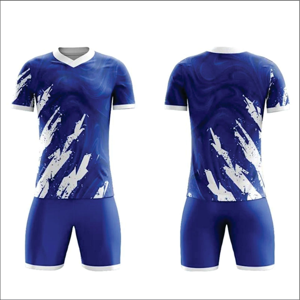 ชุดยูนิฟอร์มฟุตบอลคุณภาพสูง แขนสั้น คอวี ระบายอากาศ แห้งเร็ว ต้านเชื้อแบคทีเรีย ผลิตจากโพลีเอสเตอร์ 100% สีน้ำเงินเข้ม แบบสั่งทำ