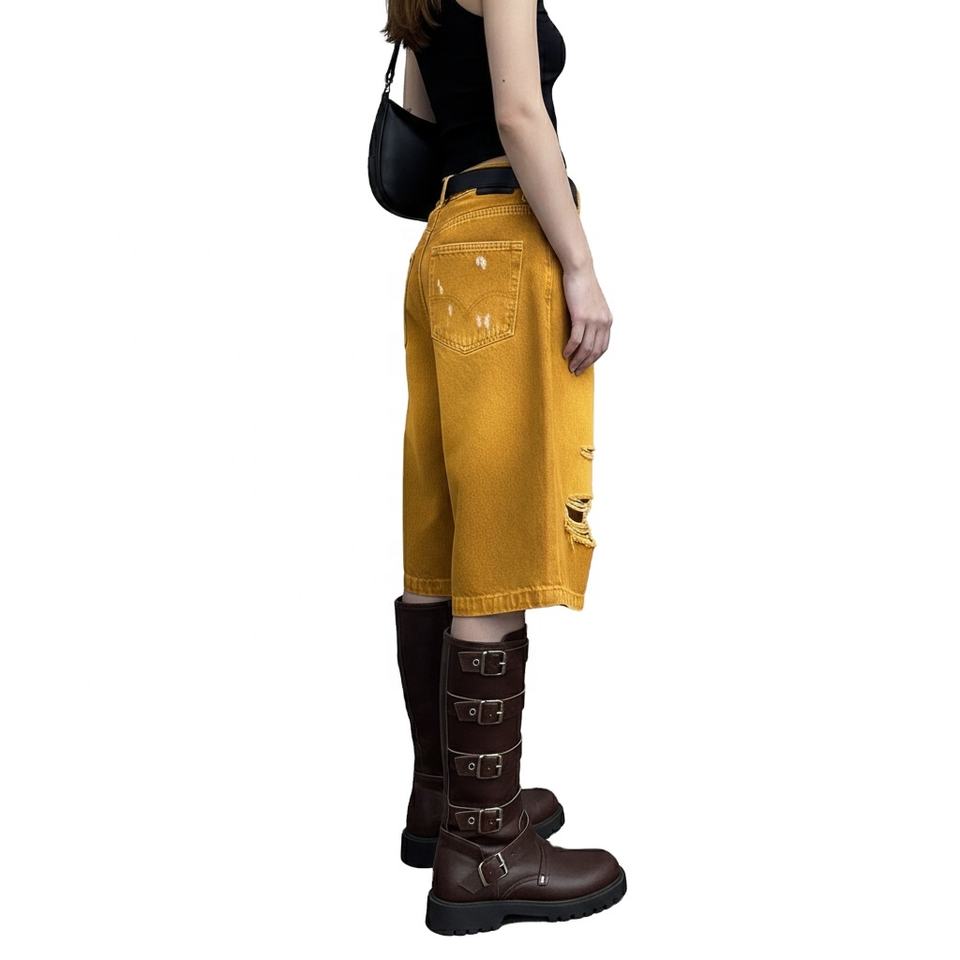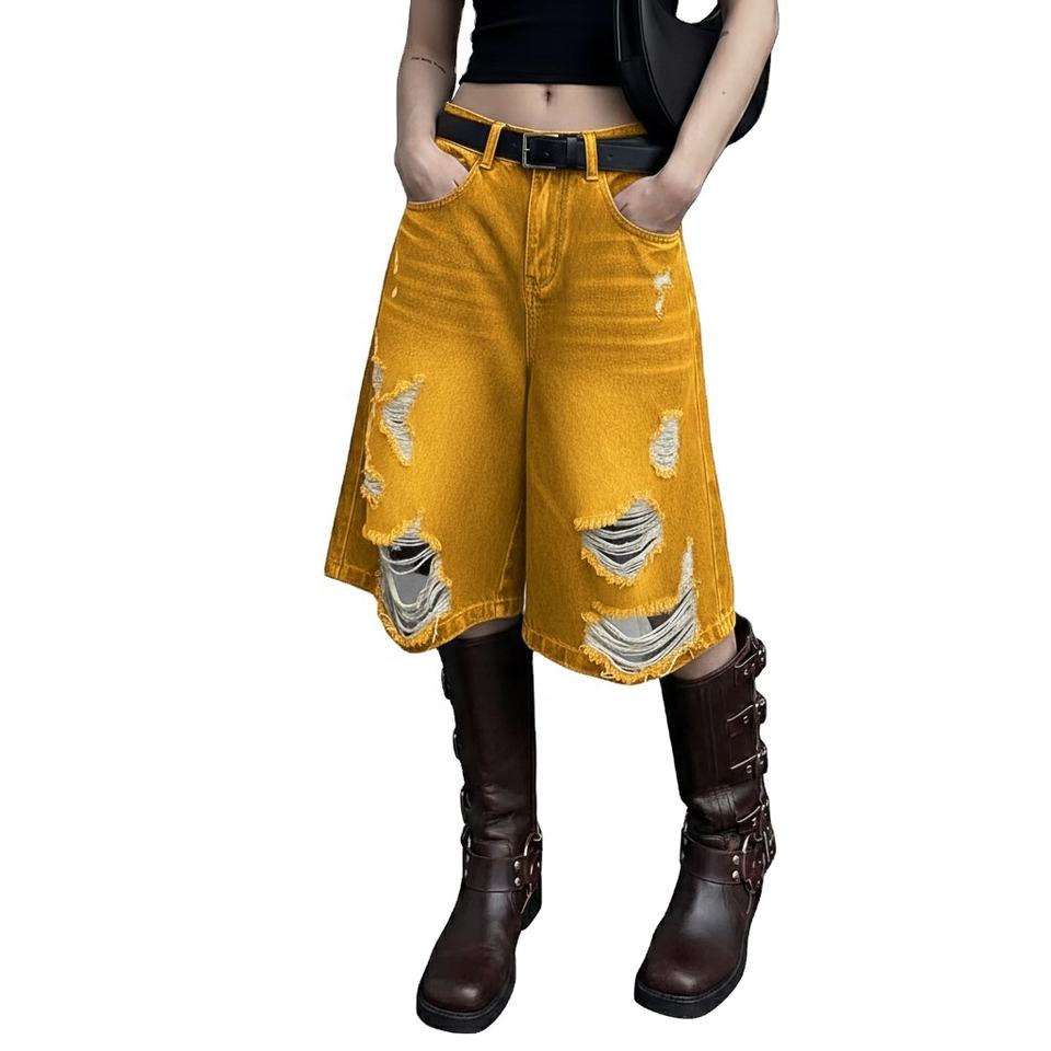 กางเกงขาสั้นคุณภาพสูงผู้หญิงกางเกงขาสั้นผ้ายีนส์สีฟ้าอ่อนผ้าฝ้ายนุ่มสบายหญิงลำลองสตรีทแฟชั่นฤดูร้อนกางเกงขาสั้นผ้ายีนส์สุดฮอต