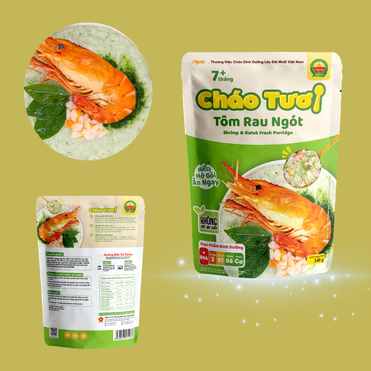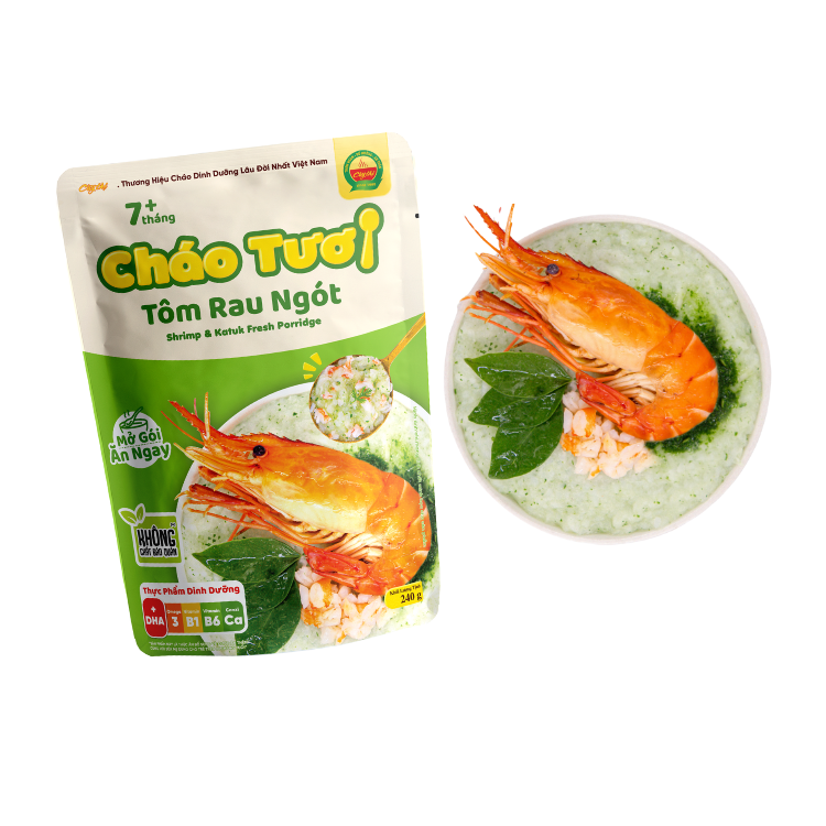 โจ๊กกุ้ง katuk ที่มีคุณภาพสูงอาหารที่มีคุณค่าทางโภชนาการสะดวกสำหรับมื้อกลางวันหรือมื้อเย็นของทารก