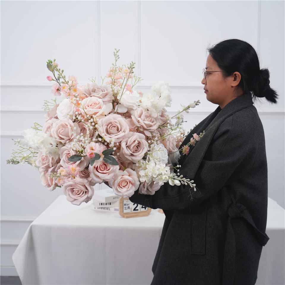 ดอกไม้ประดิษฐ์คุณภาพสูงจากผ้าไหม รูปทรงกลม สำหรับตกแต่งโต๊ะงานแต่งงาน ดอกกุหลาบทรงกลม