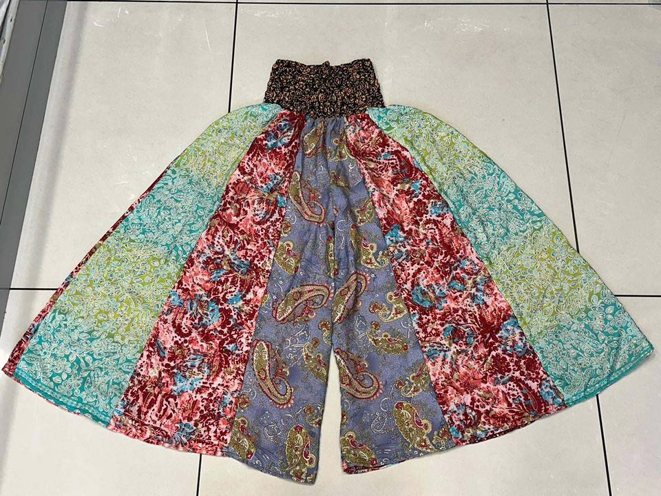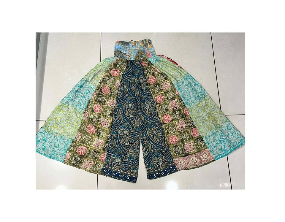 High Quality Silk Wide Leg Palazo Pant for Women Bohemian Hippie Silk Trouser Randomly Assorted Patch Layer Pant