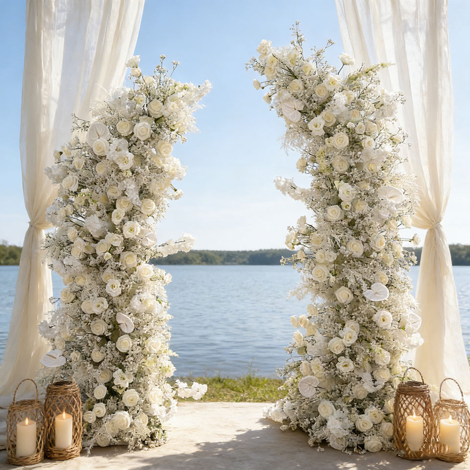 ซุ้มดอกไม้ประดิษฐ์จากผ้าไหมคุณภาพสูง สมจริง พร้อมปรับขนาดได้ สำหรับตกแต่งงานปาร์ตี้ งานฉลองครบรอบ หรือตกแต่งภายใน