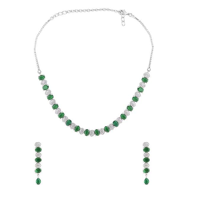 ชุดเครื่องประดับแฟชั่นสีเงินคุณภาพสูงสำหรับผู้หญิงสร้อยคอและต่างหูเพทายสีเขียวสำหรับงานแต่งงานและปาร์ตี้ส่งตรงจากอินเดีย