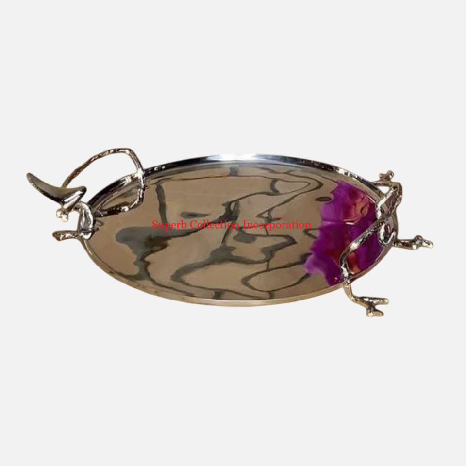 ถาดโลหะเงินพร้อมที่จับผีเสื้อถาดเสิร์ฟอาหารดีไซน์มาตรฐานซัพพลายเออร์สำหรับเสิร์ฟอาหาร