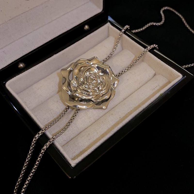 สร้อยคอดอกไม้วินเทจชุบเงินคุณภาพสูงสำหรับผู้หญิงโซ่สแตนเลสฝรั่งเศสหรูหราของขวัญสไตล์น่ารักสำหรับงานเลี้ยง