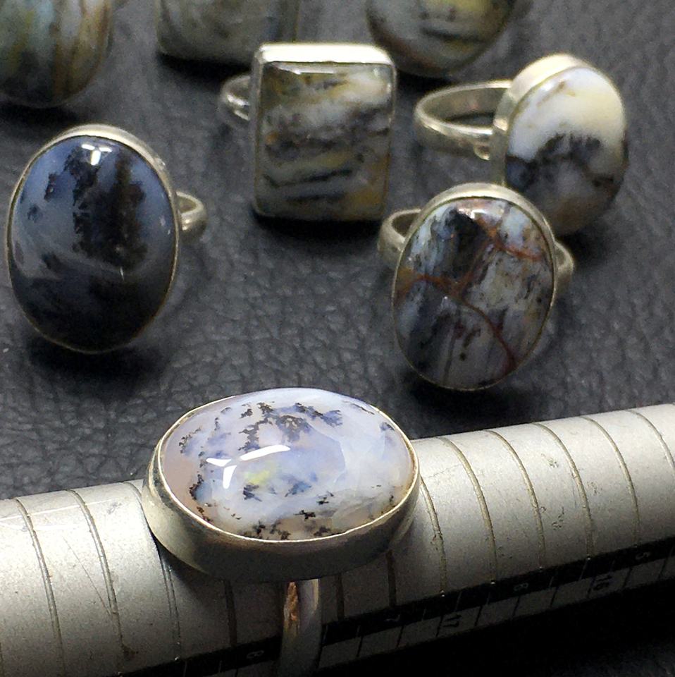 แหวนเงินคุณภาพสูง Dendrite โอปอลหินโมราพลอยแจสเปอร์คลาสสิกการหมั้นงานแต่งงานของขวัญงานเลี้ยงวันครบรอบ